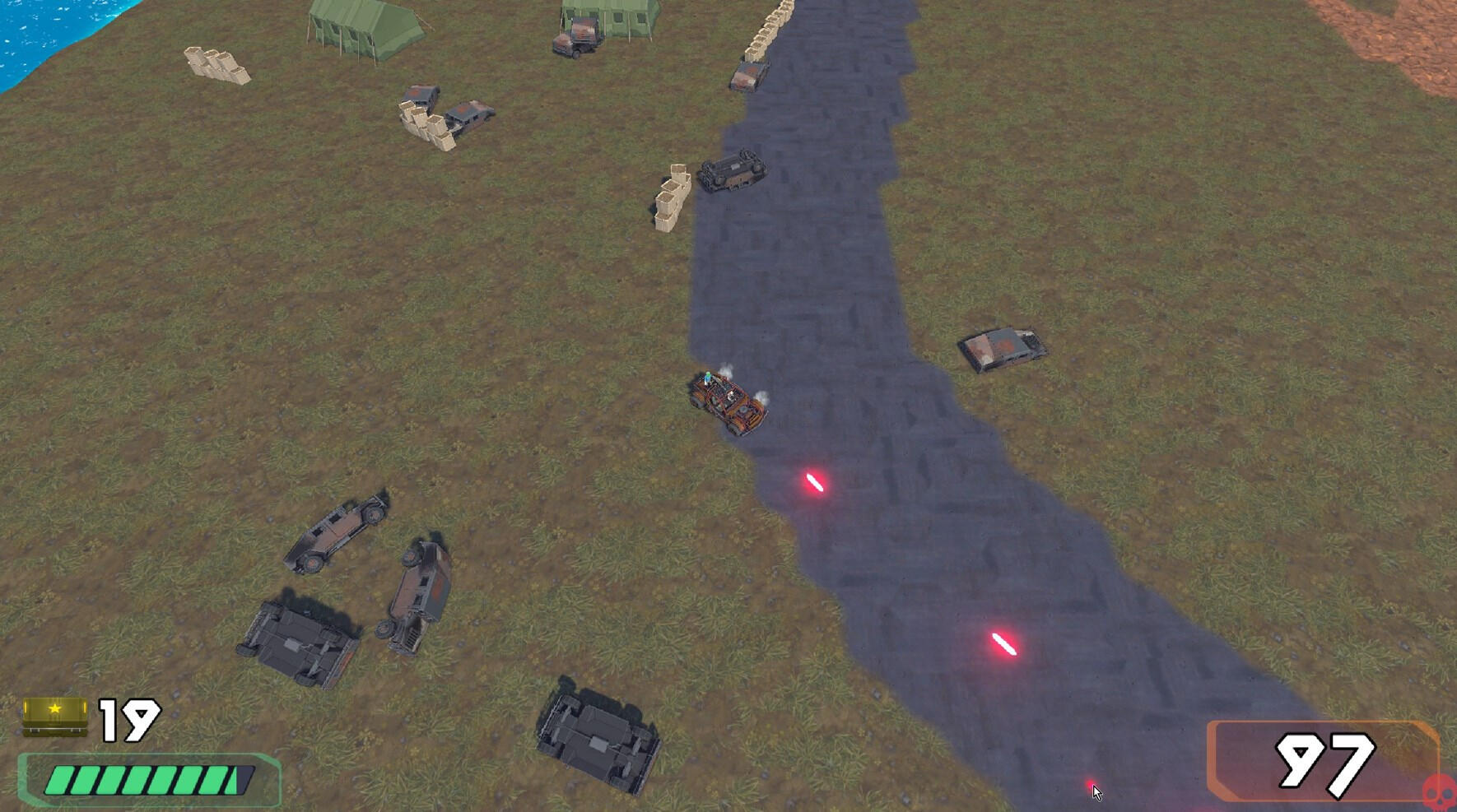 Warlord Wheels is a fast, top-down car-combat prototype where you and your Buddy Gunner tear across the wasteland in your SWEET buggy — hunting supply trucks, stealing military hardware, and staying one step ahead of the Cop Commander who owns this land.
